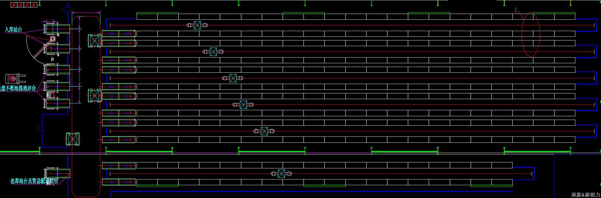 二楼出库区输送系统(含直轨穿梭车2台、输送机43台,使用西门子PLC控制);